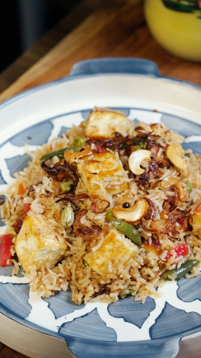 Aromatic, one-pot Indian rice dish with golden-fried paneer, colorful vegetables, and whole spices. Perfect for festive occasions or a comforting weekend meal.